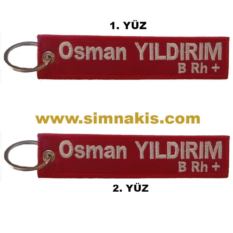 Anahtarlık nakış işleme isim soy isim kan grubu 3×13 cm çift taraflı